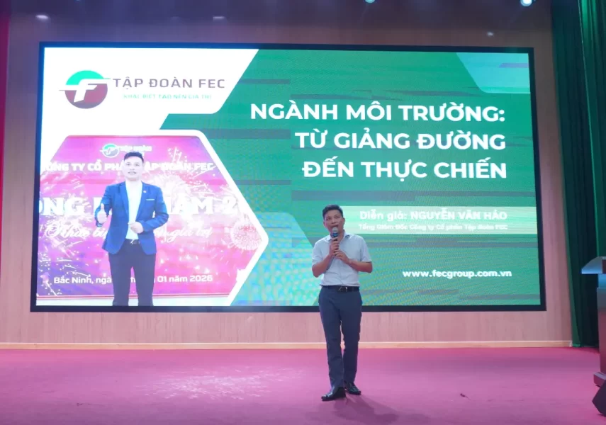 Tâm điểm của sự kiện là phiên tọa đàm giữa sinh viên với đại diện doanh nghiệp và cựu học viên thành đạt. Trong đó, phần chia sẻ của ông Nguyễn Văn Hảo – Tổng Giám đốc Công ty Cổ phần Tập đoàn FEC thu hút sự quan tâm lớn. Ông tập trung phân tích hành trình chuyển đổi của sinh viên ngành môi trường từ “giảng đường” đến “thực chiến”, giai đoạn mang tính quyết định đối với quá trình hội nhập nghề nghiệp.